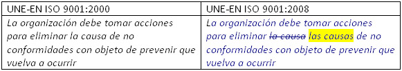 Cambio gramatical, meramente formal. El objetivo de las acciones correctivas es eliminar las causas de las no conformidades. Una no conformidad puede tener una o varias causas.