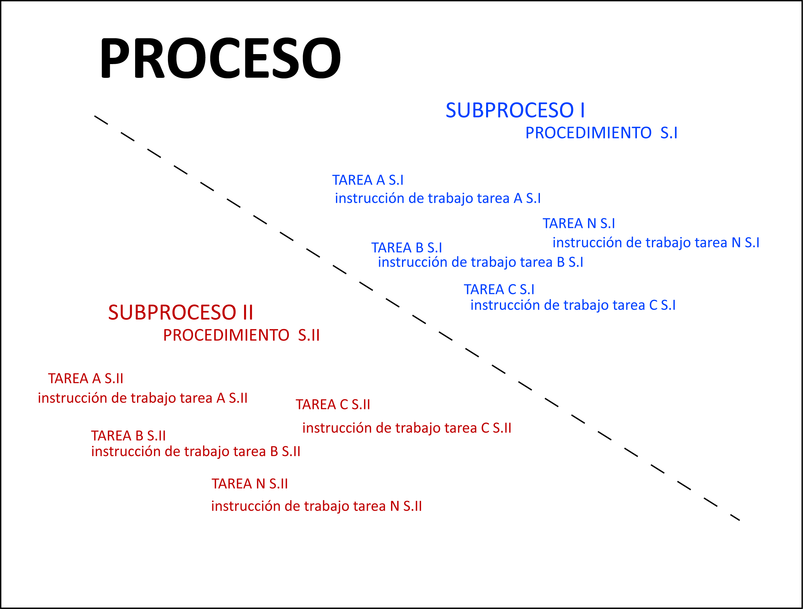 Asimismo, los subprocesos se pueden dividir en tareas que pueden tener desarrolladas sus correspondientes instrucciones de trabajo.