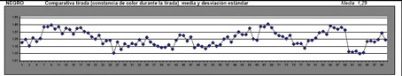 En la gráfica se representan los datos tomados de una variable dada por medio de puntos en diferentes momentos del proceso productivo (eje de las x). En el eje de las y se hallan los valores posibles que puede tomar la variable.