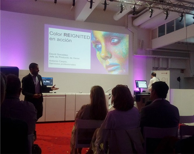 Paloma Beamonte, Directora General Xerox Iberia y Luis Heras, XE Wide Format Manager en un momento de la presentación
