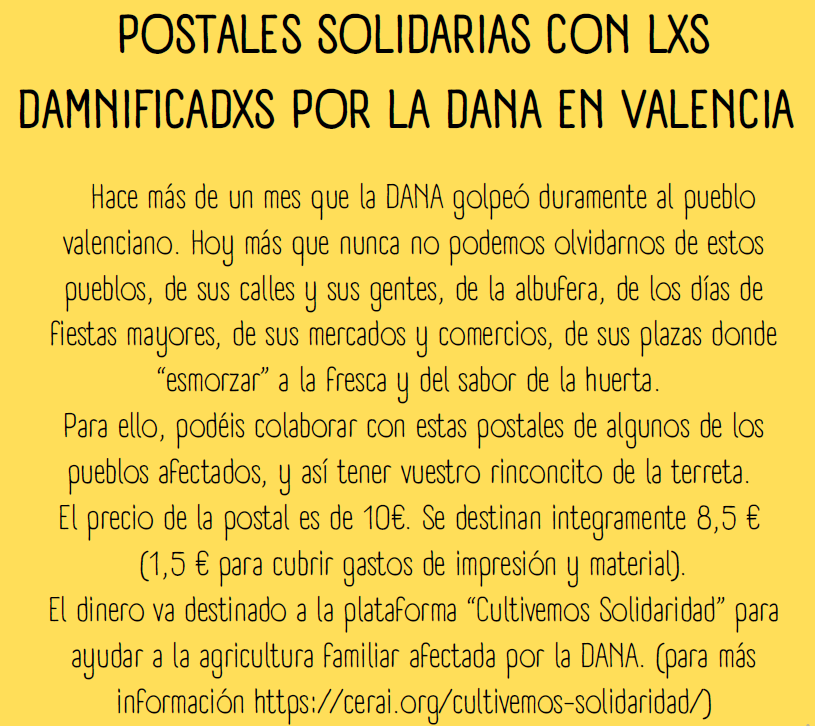 - Nota aparte: Puedo contar de primera mano cómo Paula, una de mis sobrinas, muy vinculada con la Comunidad Valenciana por haber estado estudiando y trabajando allí, organizó una iniciativa a partir de una de sus muchas destrezas, la pintura, para recaudar fondos y entregarlos a una ONG que actuaba en la zona. Su loable gesto le permitió recaudar más de 1000 euros.