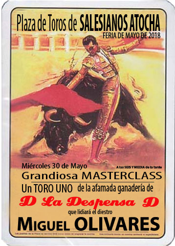 La intervención consistía en cambiar los textos para indicar el evento, descontextualizando la acción gráfica del cartel original y generando por lo tanto una broma donde Miguel Olivares es «el diestro», la Despensa pasa ser la «Ganadería» y Salesianos Atocha, la «plaza» donde se lidiaría el «toro»  es decir el desarrollo de la charla. Claro está que la Masterclass es la «corrida de toros».