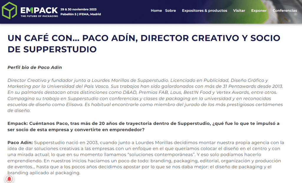 La oferta de adquisición de conocimientos sobre el sector se ve reforzada por medio de la web con Empack Stories, Empack News,….