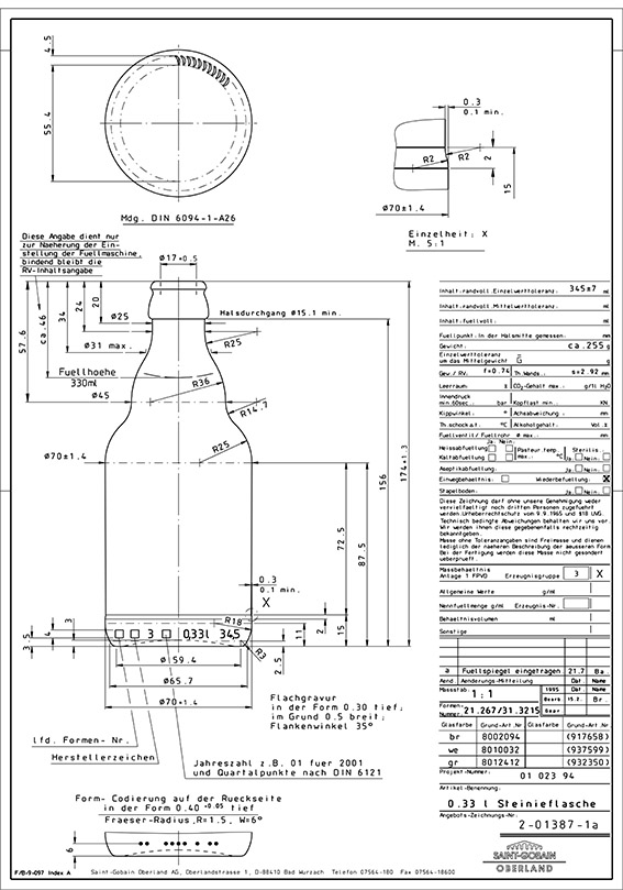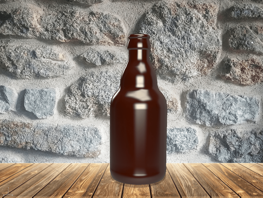 Plano vidriero de botella Steinie de 33 cc de Saint Gobain – Oberland. Punto de partidaObjeto 3D a partir del plano vidriero.
