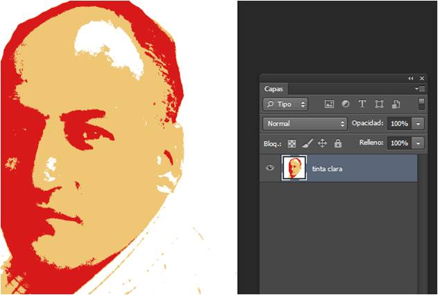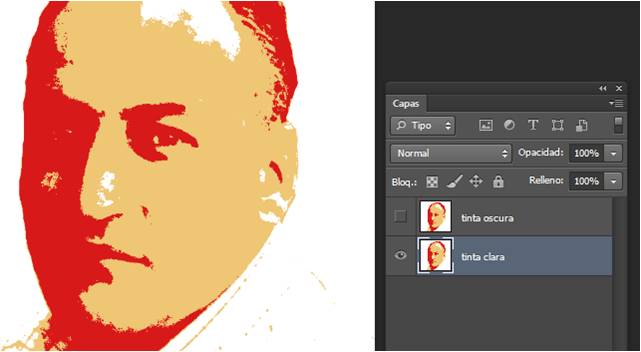- Seleccionamos la capa tinta oscura y quitamos la visibilidad de la capa tinta clara