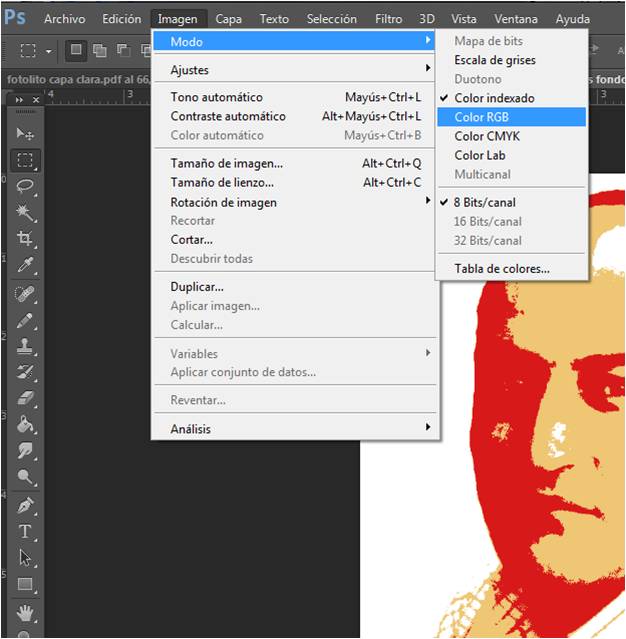 4. A continuación volvemos a cambiar el modo Menú > Imagen > RGB