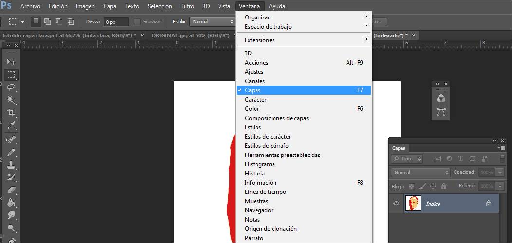 - Abrimos el panel de capas Menú > Ventana > Capas