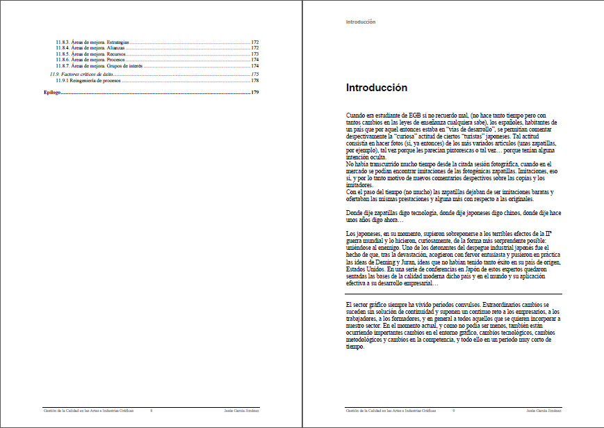 Páginas preliminares del prototipo original, incluyen índice, presentación e inicio de capítulo.