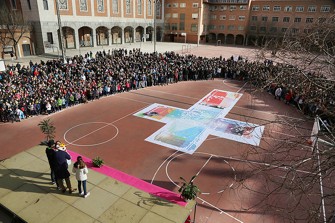 El curso pasado con motivo de una celebración salesiana tuvimos que realizar un trabajo que podemos incluir en este apartado. Este tipo de trabajos se realizan con plóteres especializados con una capacidad de impresión de más de 5 metros y con aplicaciones dedicadas por ejemplo Caldera. En nuestro caso disponemos de un plóter HP Desingjet z 6100 ps de 42 pulgadas (106 cm) y la aplicación Caldera que permite el panelado de una manera fácil y efectiva aunque por circunstancias no pudimos utilizarlo y lo debimos montar con Illustrator.