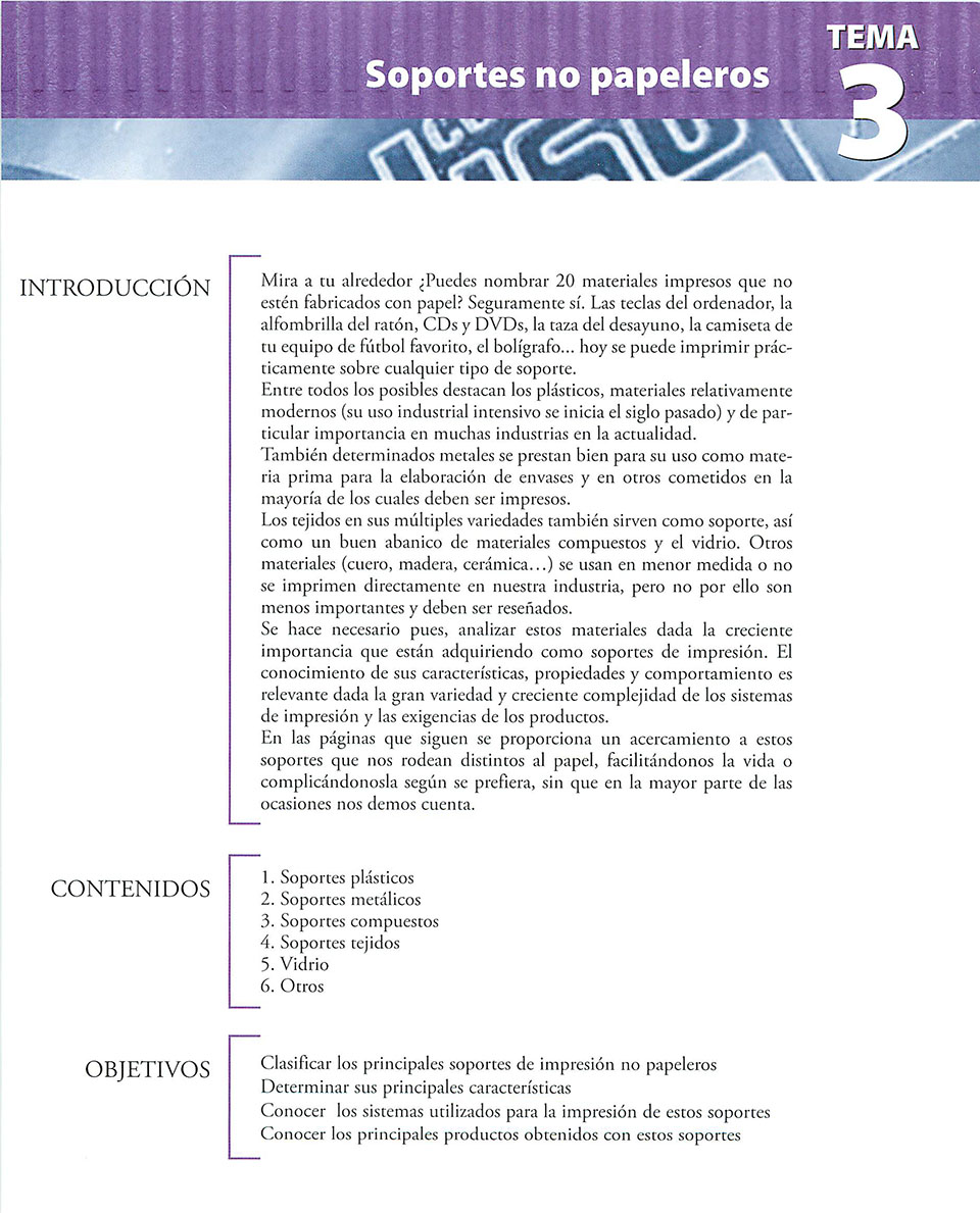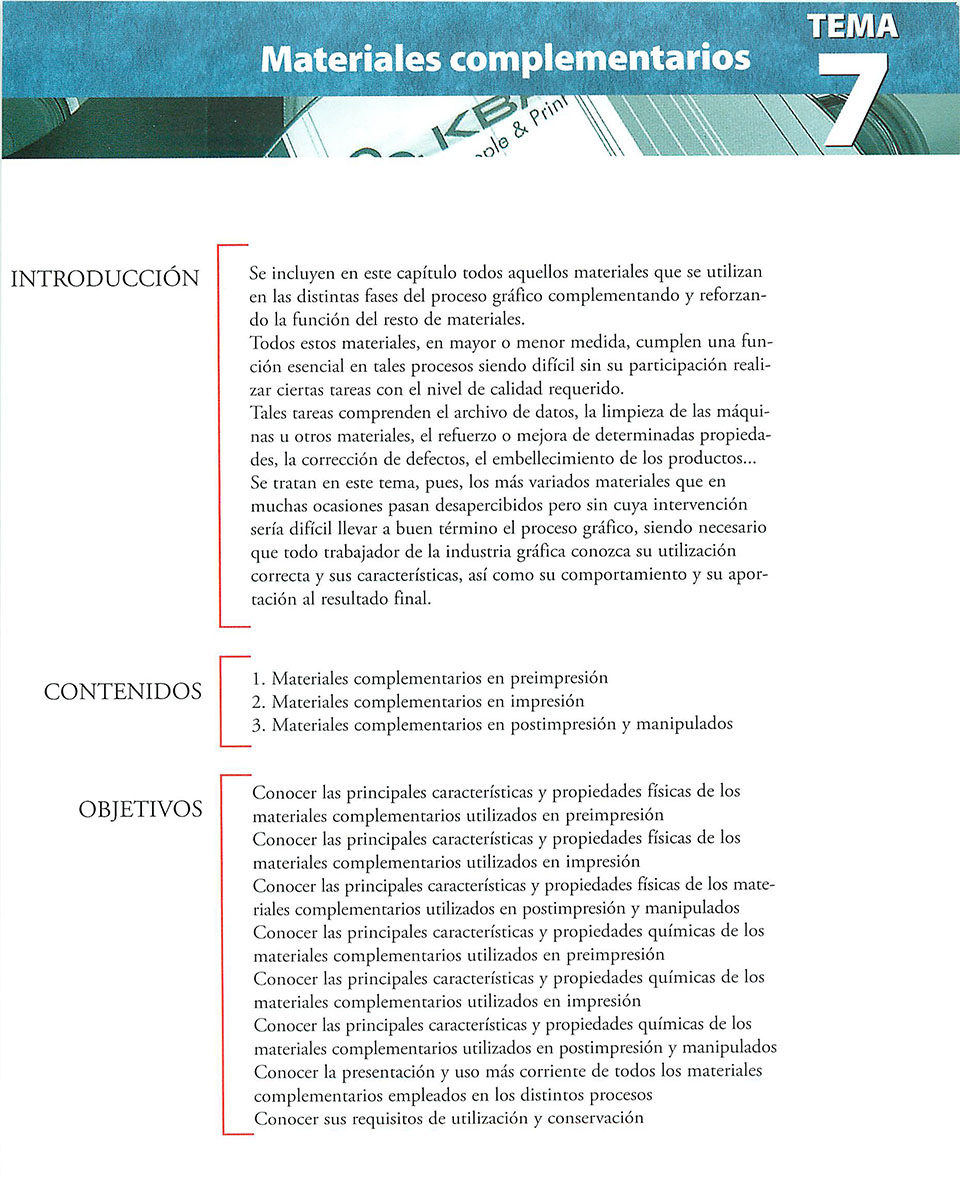 MATERIALES DE PRODUCCIÓN EN ARTES GRÁFICAS. CONTENIDOS
