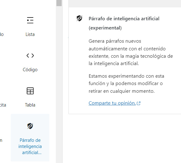 El párrafo anterior es el resultado de la experimentación de una nueva herramienta que incorpora WordPress en modo beta de generador de párrafo con inteligencia artificial… Lo ha generado a partir del título propuesto lo cual tiene cierto mérito pero…