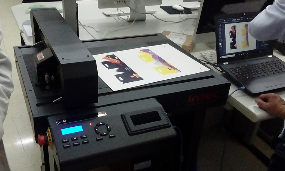 Mesa de corte y hendido presentada por TEL durante el evento y utilizada para la producción del Packaging